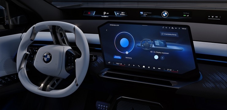 Жоғары ажыратымдылығы бар орталық дисплей классикалық тікбұрыш пішінінде емес, екі қиғаш бұрышы бар пішінде орындалған — бұл дизайн Free Cut деп аталады. Дисплей рөл дөңгелегінің дәл жанында орналасқан. Ол навигацияға, ойын-сауық жүйесіне және байланыс функцияларына интуитивті әрі түсінікті қолжетімділікті қамтамасыз етеді. Сүйікті виджеттеріңіз көз алдыңызда тұрғанын қалайсыз ба? Оларды BMW Panoramic Vision дисплейіне жай ғана тартып апарыңыз.*